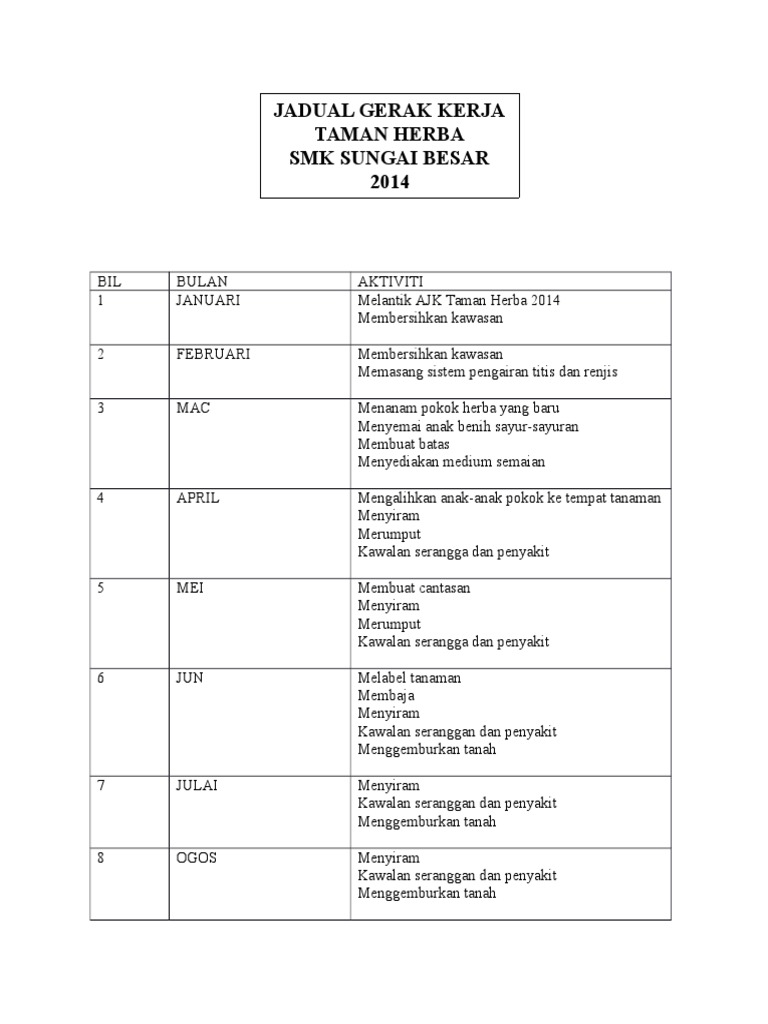 Contoh Jadual Kerja Pertanian